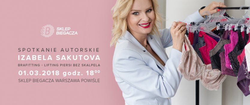 Wszystkie Panie zainteresowane zgłębieniem wiedzy na ten temat i chcące dobrać rozmiar i konstrukcję biustonosza sportowego zapraszam do Sklepu Biegacza Warszawa-Powiśle w dniu 01.03 o godz. 18:00 na spotkanie autorskie ze mną i z moją książką „Brafitting. Lifting piersi bez skalpela.